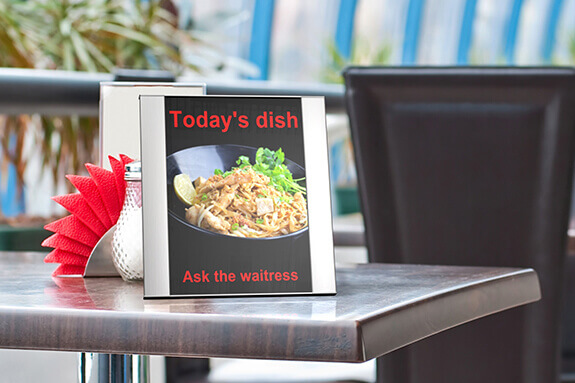 La solución de tablero de menús modular Square garantiza que cada rama de una cadena tenga la misma sensación, para que los clientes sepan que han llegado al lugar correcto. Disponibles en casi cualquier tamaño, se pueden adaptar a las necesidades individuales de cualquier lugar.