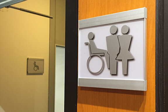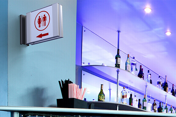 Una de las mayores ventajas de los signos del sistema Square es el aspecto uniforme que obtienes en múltiples tipos de señalización. Dirija a los visitantes por los pasillos, suspenda las señales flotantes fuera de la puerta del baño e instale carteles de información dentro de la habitación.